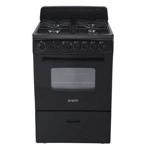 The Avanti Gas Range Oven features a compact freestanding design with a 2.6 cu. ft. capacity. It includes four sealed burners with electronic ignition for reliable cooking. A user-friendly design with a glass oven door and integrated storage drawer enhances convenience. The oven is ADA-compliant, ensuring broad accessibility and usability. This model combines efficiency with a modern aesthetic, making it suitable for small kitchens.