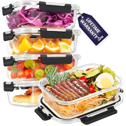 Vtopmart 5Pack 22oz Glass Storage Containers with Lids, Glas | These containers are great for those who need efficient stor… more |