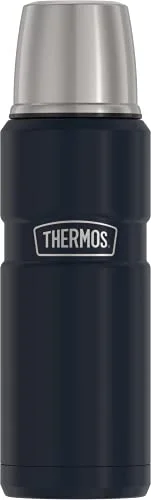 The THERMOS Stainless King features vacuum insulation for optimal temperature retention. It keeps beverages hot for 18 hours and cold for 24 hours. Constructed from durable stainless steel, it includes a built-in serving cup and a twist and pour stopper for convenient serving.