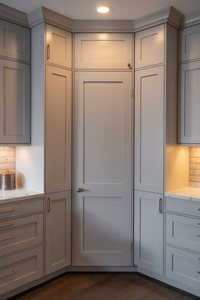 When planning kitchen hidden door ideas, focus on subtle hardware and matching finishes. Push-to-open doors, flush panels, or integrated handles help the door blend naturally into the wall. Using the same paint color or cabinet style ensures it remains almost invisible. These smart design choices create a polished, Pinterest-worthy kitchen with a custom feel.