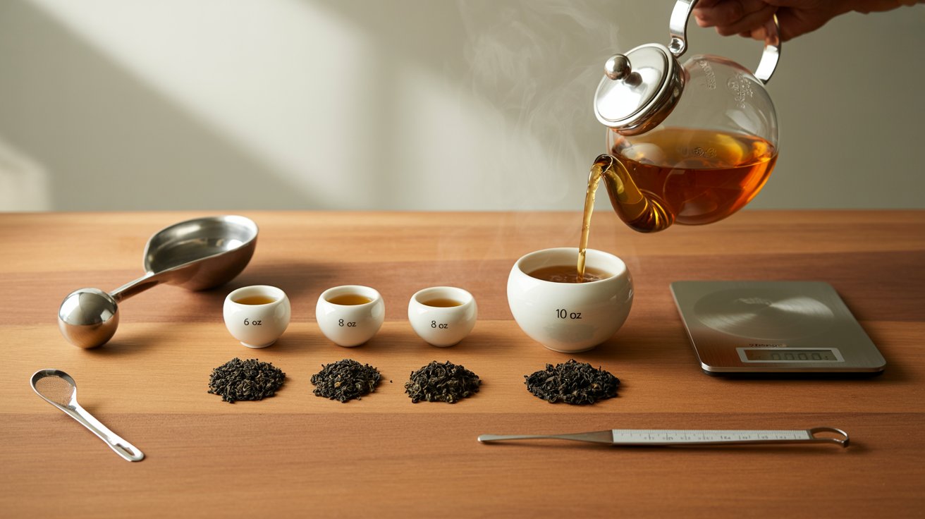 | Teapot Brew | 20–32 oz (590–950 ml) | 6–10 g | 3–5 minutes | Perfect for sharing, mellow tea |