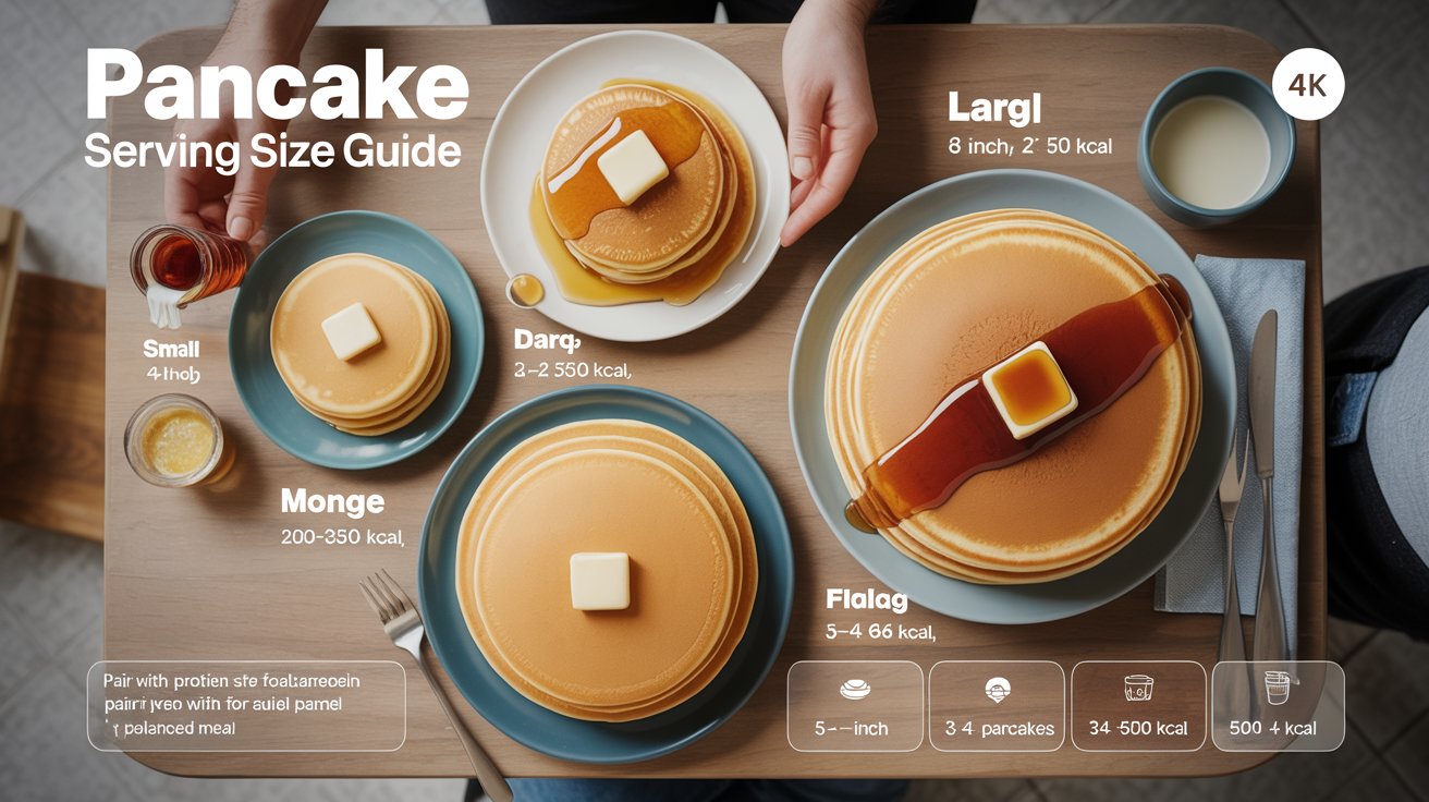 | Standard Serving | 4–5 inches | 2–3 pancakes | 200–350 kcal |