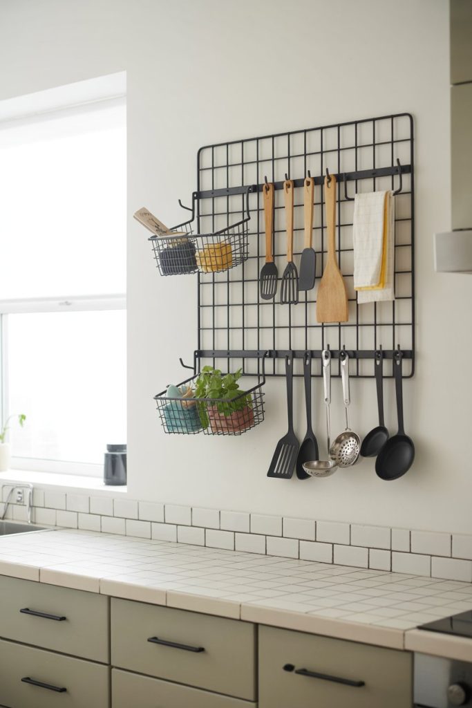 - Creates a functional wall display: Tools become part of the kitchen décor.